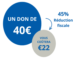 Vous recevrez cette attestation automatiquement au cours de l’année suivante. La déduction fiscale s'élève à 45 % du montant de votre don.